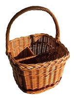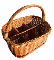Starker Flaschenkorb aus fester, widerstandsfähiger Weide mit geflochtenen Trennwänden für einzelne Korbfächer. Der gezopfte Korbrand ist sehr stabil und der Längshenkel ermöglicht ein müheloses Tragen.